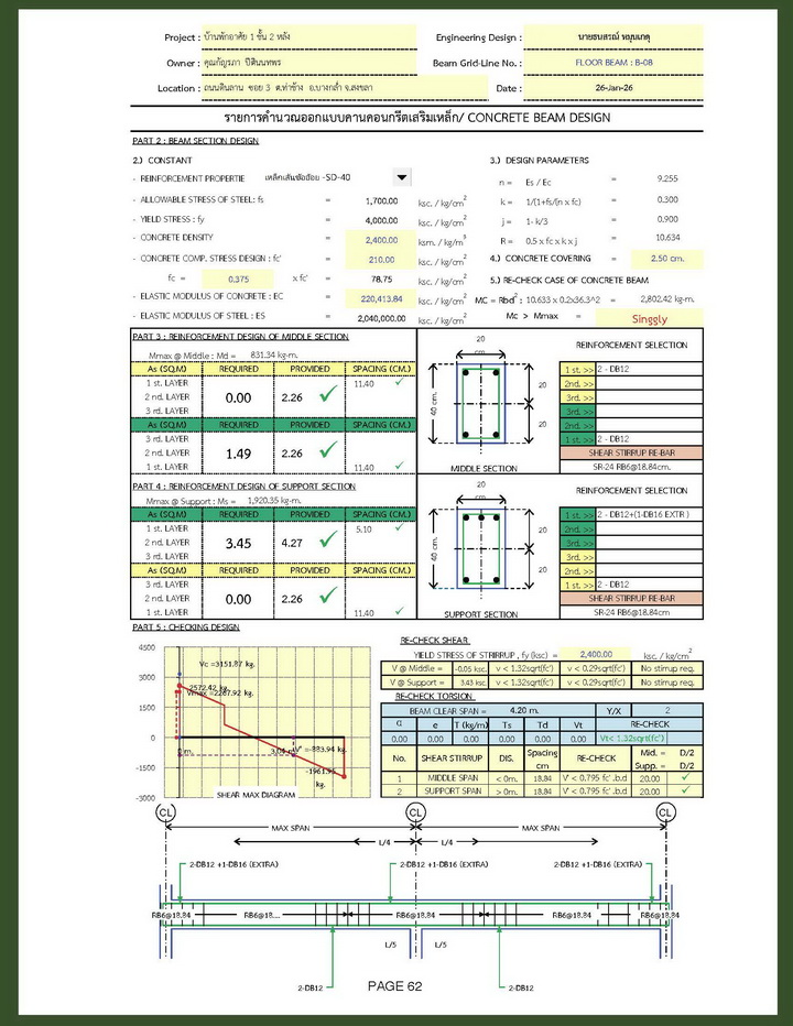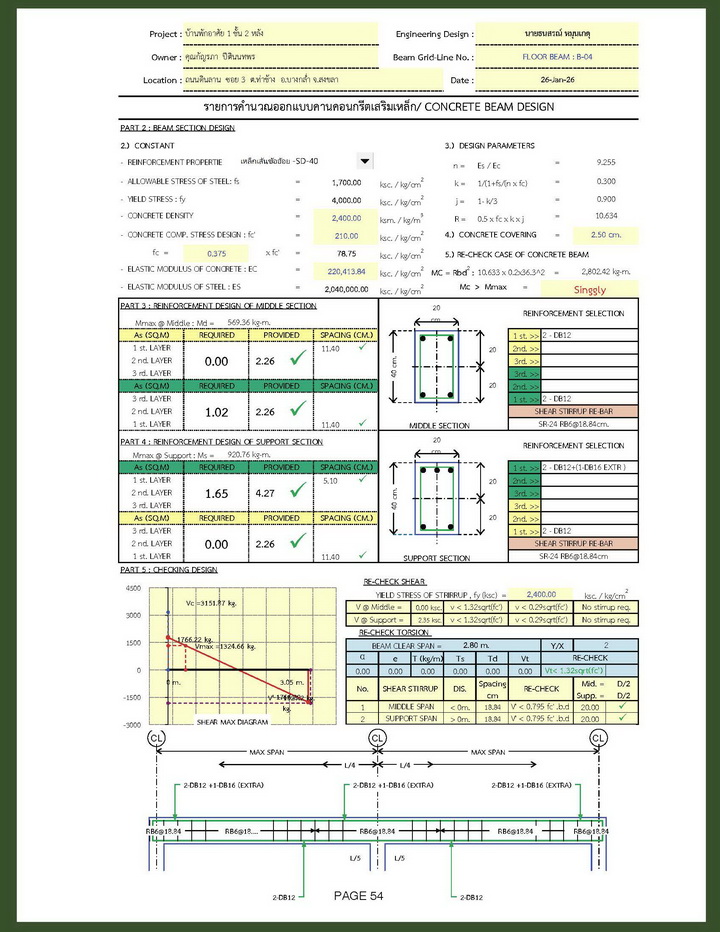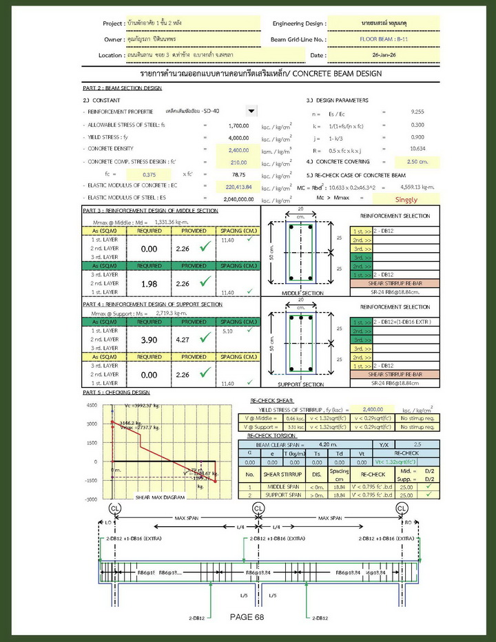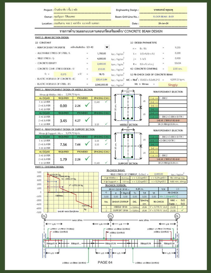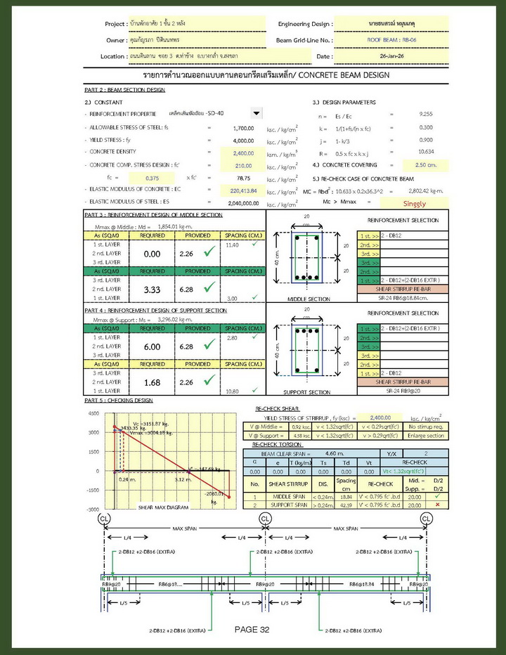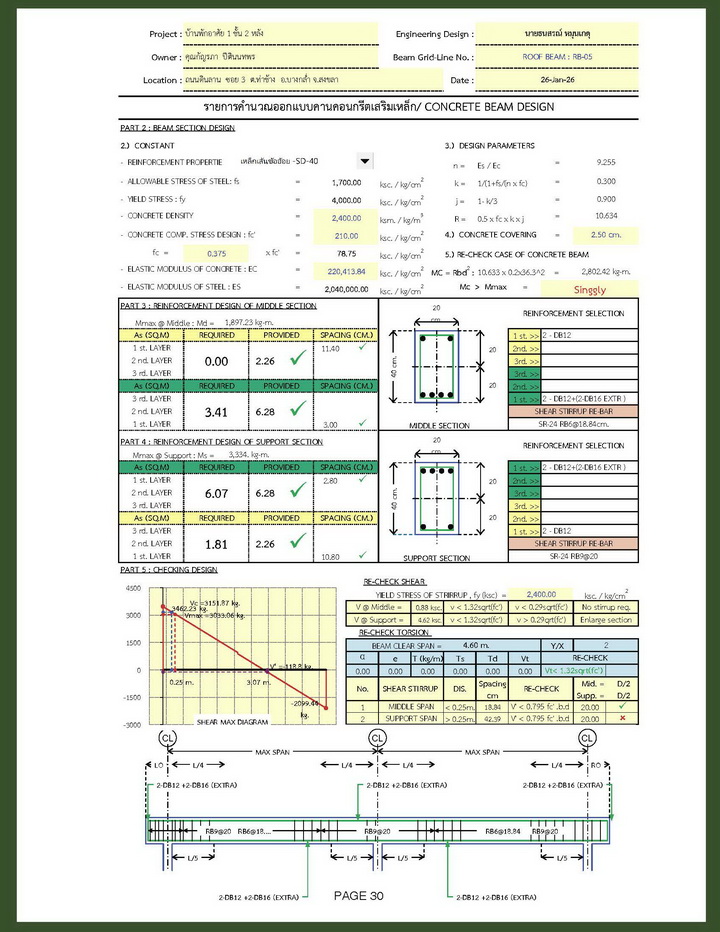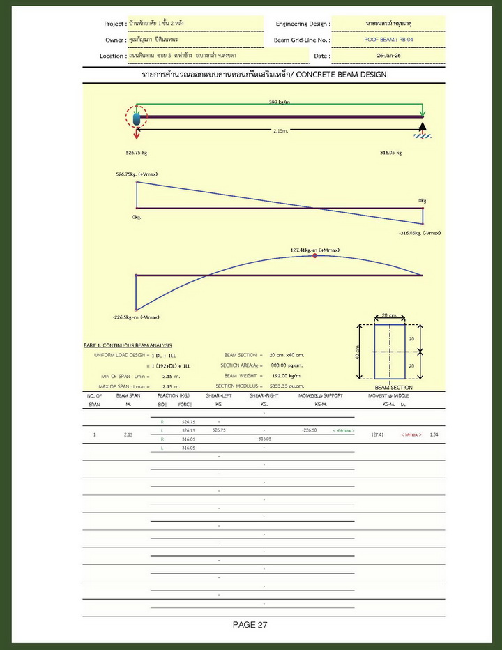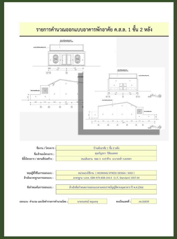 รายการคำนวณออกแบบอาคาร ค.ส.ล. 1 ชั้น 2 หลัง (วิธี WSD) ![]()