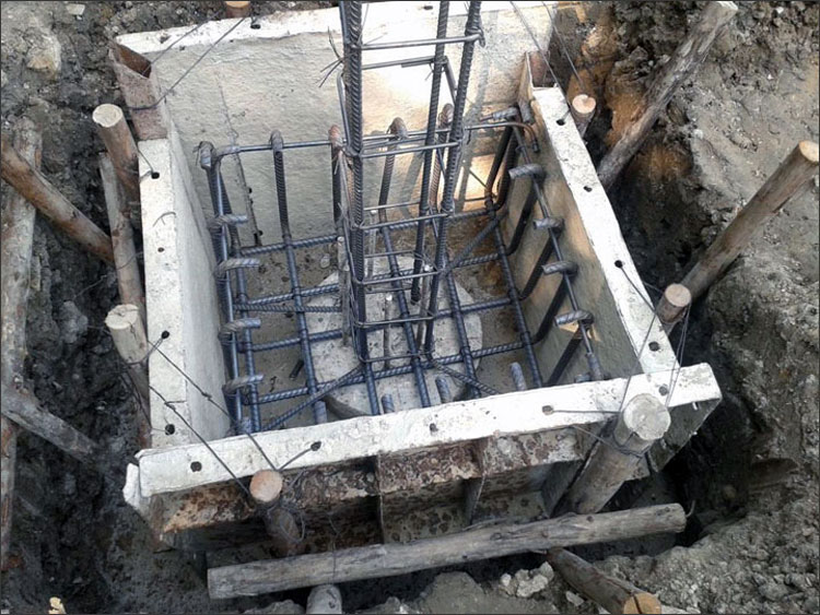 - แรงเฉือน: รับโดยความหนาของคอนกรีตฐานราก