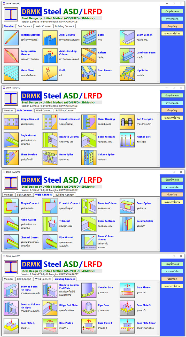 โปรแกรม DRMK Steel and Connections by Unified Method (ASD/LRFD) (Metric/SI Units) (ออกแบบได้ 45 ตัว)
