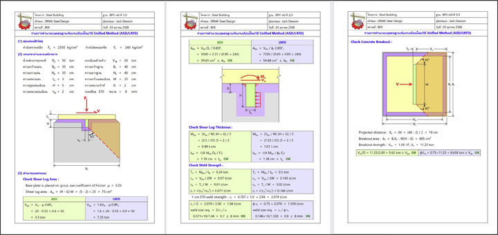 ✓ คำนวณออกแบบเหล็กรูปพรรณต่างๆได้แก่ พื้น คาน เสา และจุดต่อทั้งแบบสลักเกลียวและแบบเชื่อมตลอดจนถึงแบบผสม
