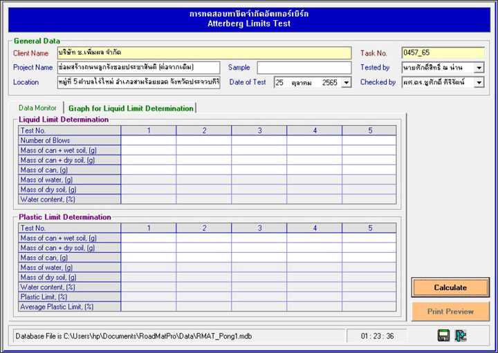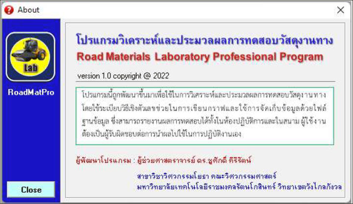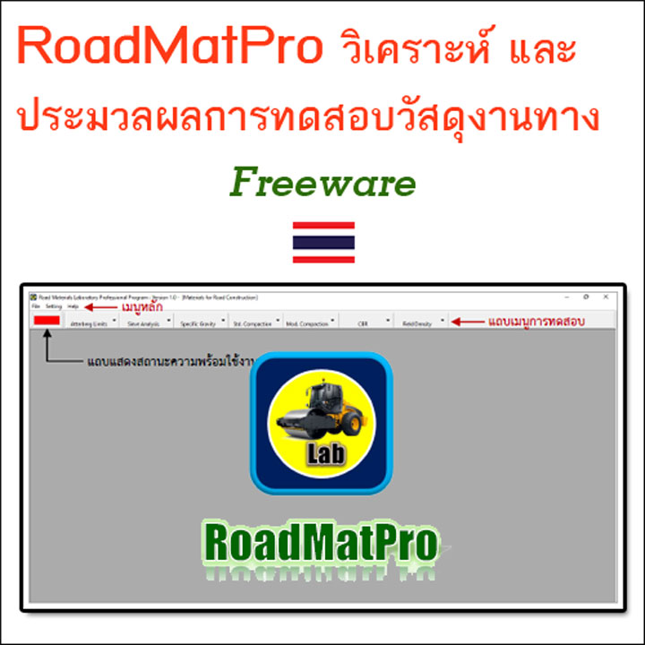 โปรแกรม RoadMatPro (Road Materials Laboratory Professional Program) โปรแกรมวิเคราะห์และประมวลผลการทดสอบวัสดุงานทาง