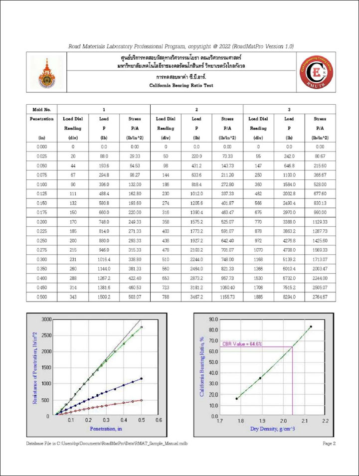 เป็นโปรแกรมที่พัฒนาขึ้นเพื่อใช้สำหรับการวิเคราะห์และประมวลผลการทดสอบทางต้านปฐพืกลศาสตร์ของวัสดุงานทางชนิดดินและหินคลุก โดยสามารถดำเนินการรายงานผลการทดสอบได้ทั้งหมด 7 การทดสอบ ได้แก่