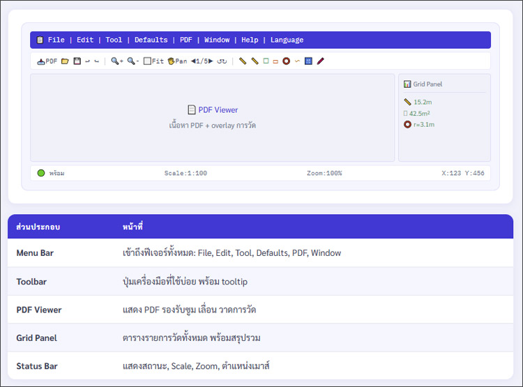 โปรแกรมช่วยวัดระยะและคำนวณพื้นที่บนเอกสาร และ บน PDF & CAD แบบมืออาชีพ