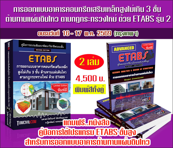 | หัวข้อ: | การออกแบบอาคารคอนกรีตเสริมเหล็กสูงไม่เกิน 3 ชั้น ต้านทานแผ่นดินไหว ตามกฎกระทรวงใหม่ ด้วย ETABS รุ่นที่ 2 เปิดรับสมัคร |